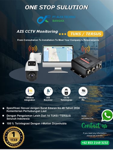 Kami menyediakan AIS Receiver dan CCTV sesuai dengan spesifikasi SE DJPL No 48 Tahun 2024 secara profesional, dengan instalasi yang terkoneksi langsung dengan software I-Motion Perhubungan Laut. Memastikan keamanan dan pemantauan kapal Anda berjalan akurat dan real-time.