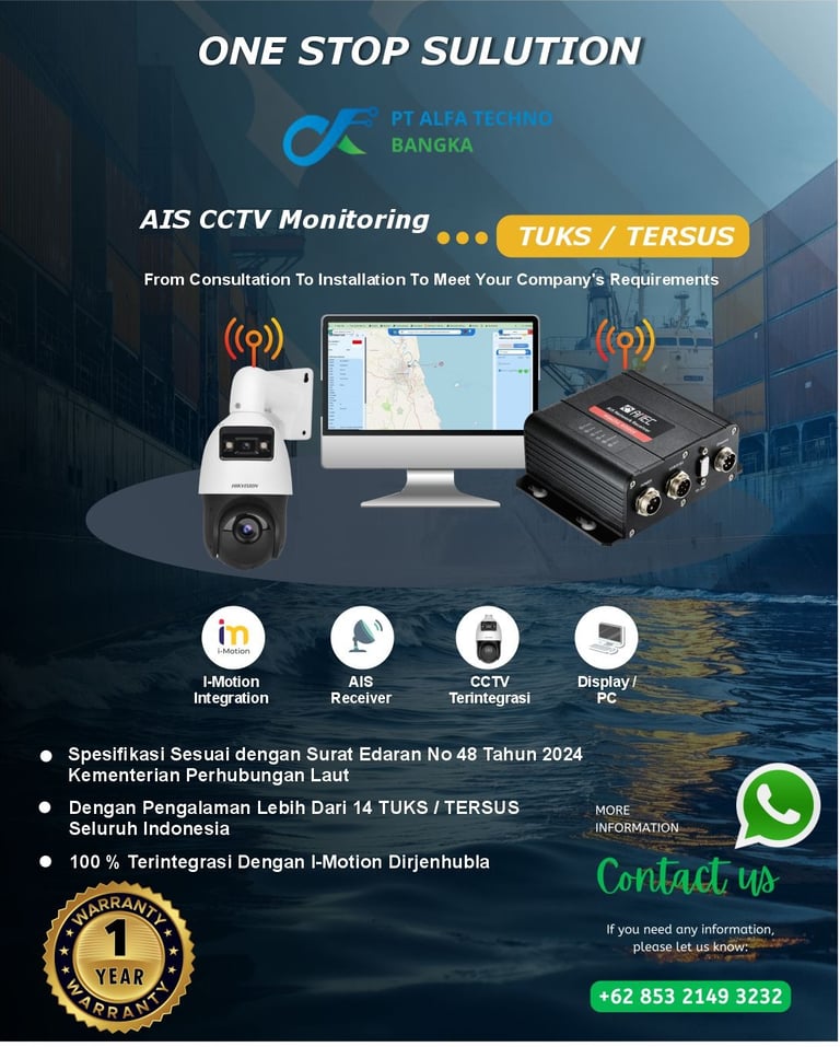 Pemasangan CCTV dan AIS terintegrasi untuk pengawasan penuh kapan saja dan di mana saja.